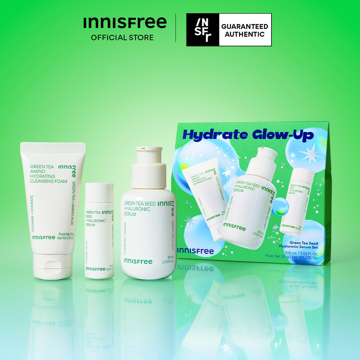 This set includes: 1x Green Tea Seed Hyaluronic Serum 80ml 1x Green Tea Seed Hyaluronic Serum 25ml1x Green...